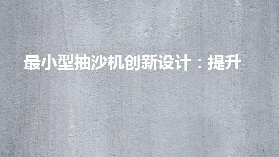 最小型抽沙機(jī)創(chuàng)新設(shè)計(jì):提升效率的抽沙設(shè)備如何改變產(chǎn)業(yè)格局?